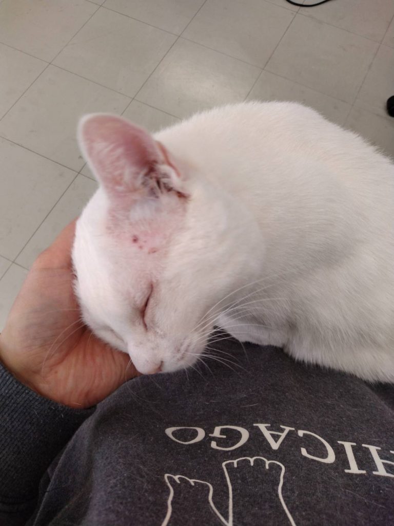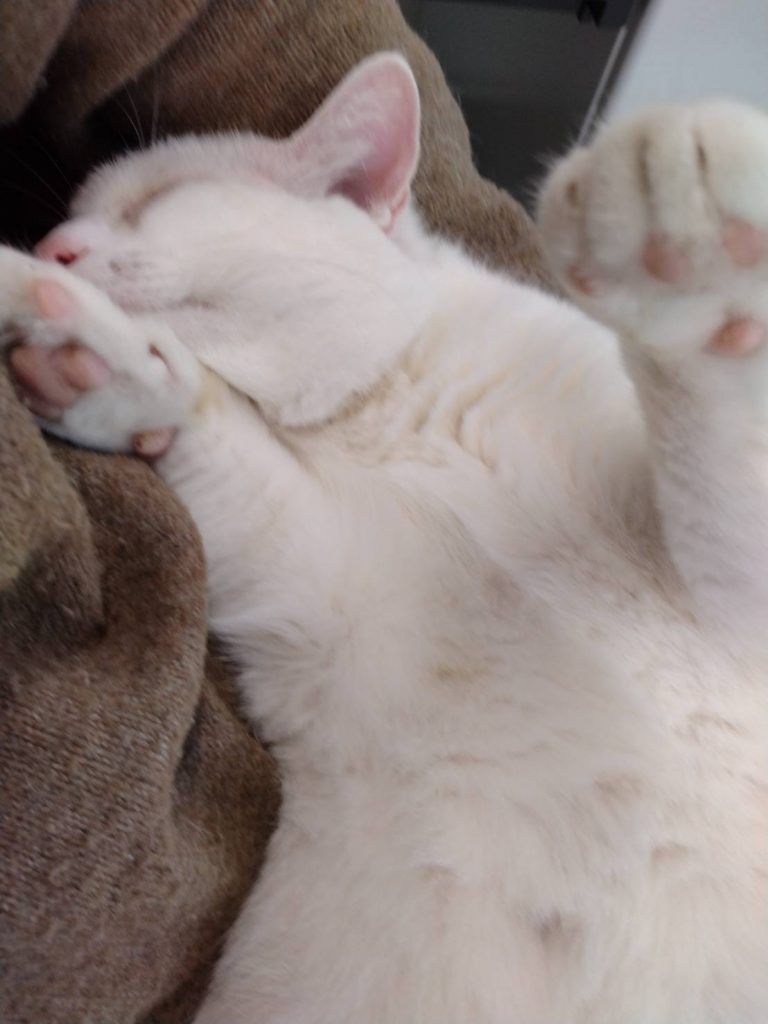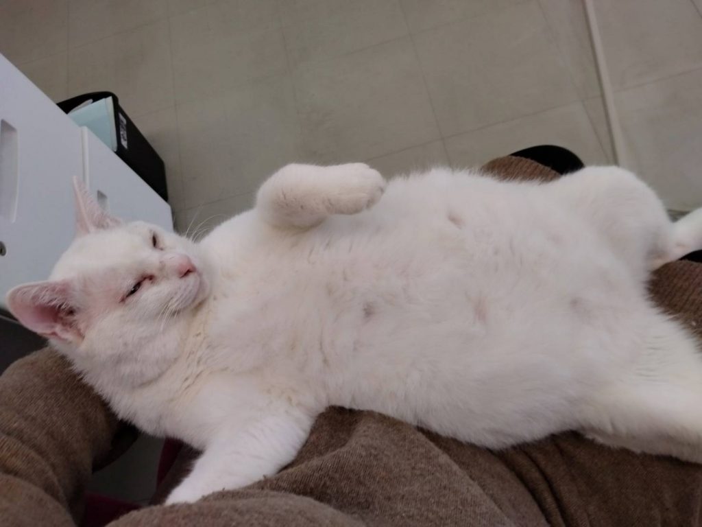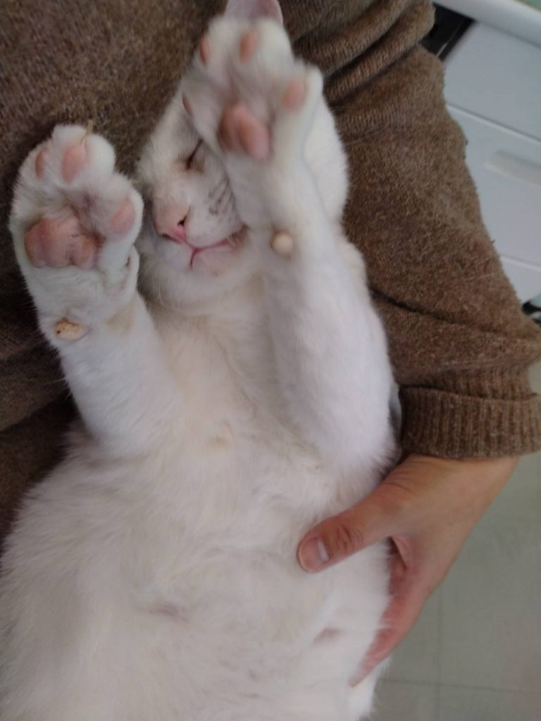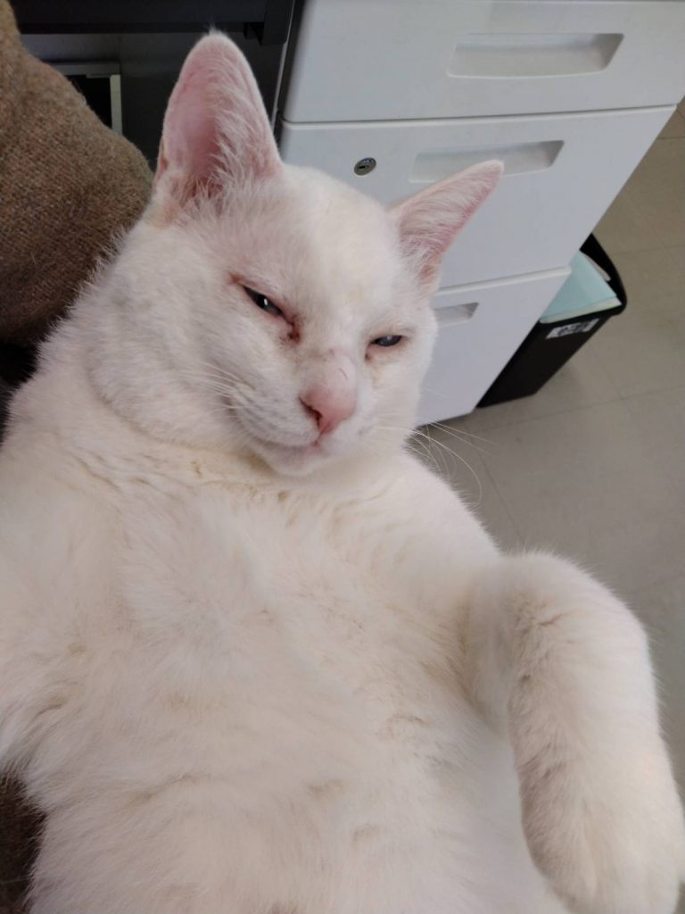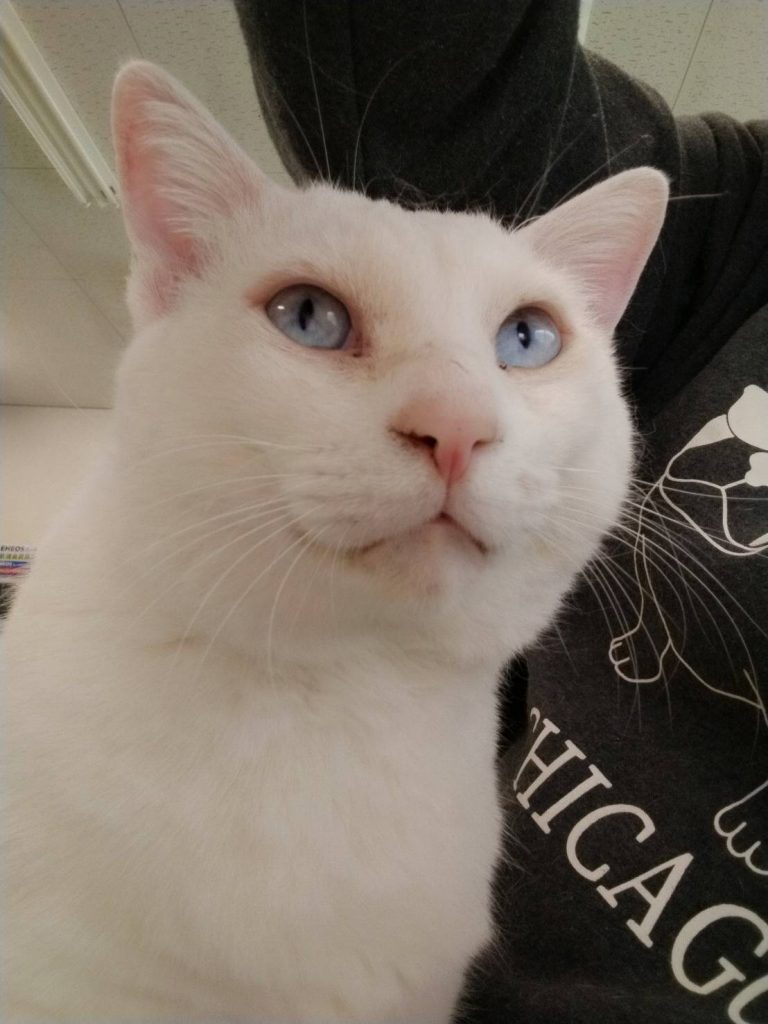 お家と家族を探している「ブルーアイ」で真っ白なにゃんこです♥